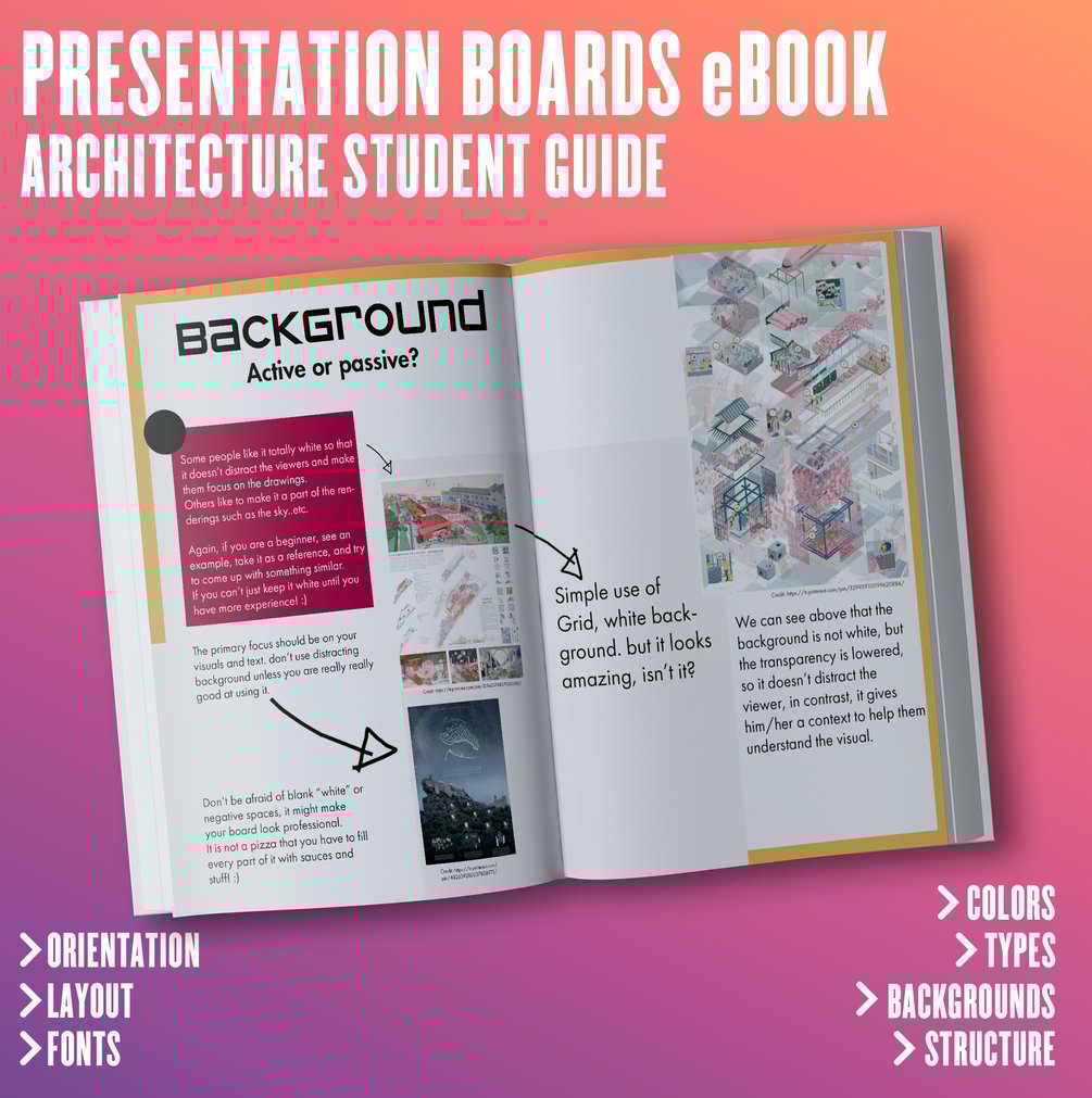 - In this short e-book, we will be giving a really brief introduction about the presentation boards in architecture, how to think about them, what are their criteria? and we will check together some examples and try to understand them.