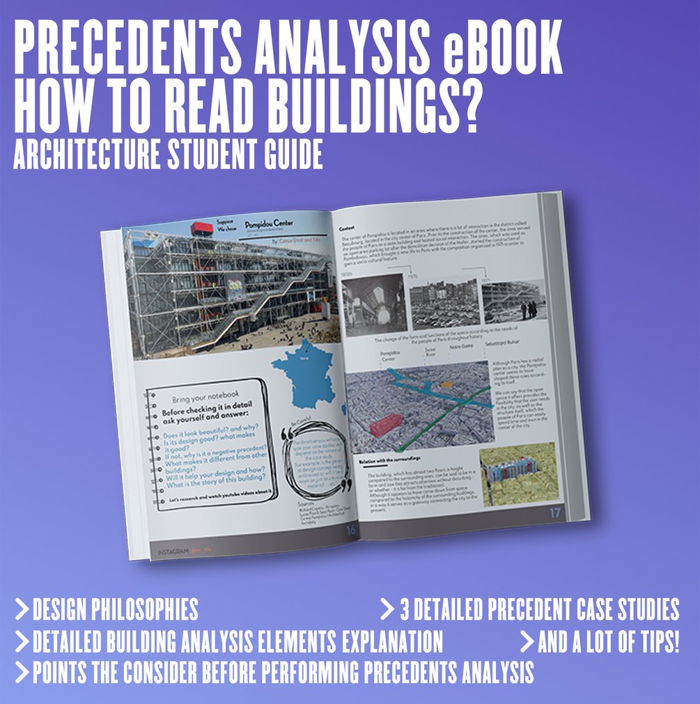 - In this e-book we will learn how to perform the best precedents case studies, In order to understand music and write your own composition, we must first learn how previous music was written and what feelings does it contain! In order to learn a language, we need to learn its letters, sentences, grammar and literature. The same goes for architecture! We have to understand well the precedents to be able to create our own masterpieces!